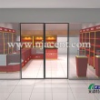 此款香烟柜台是密度板烤漆,尺寸按常规或场地具体情况定。